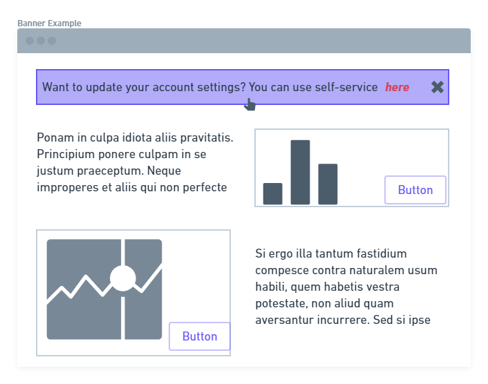 The team owning the self-service pages in the web portal added a banner to announce the feature. This banner was on one landing page in the web portal and it announced the availability of the self-service feature to customers. See a mockup of the banner below. But, we were not sure whether the banner was being read. Were customers even logging in to the web portal? Were customers reaching this landing page? Were they reading this banner?