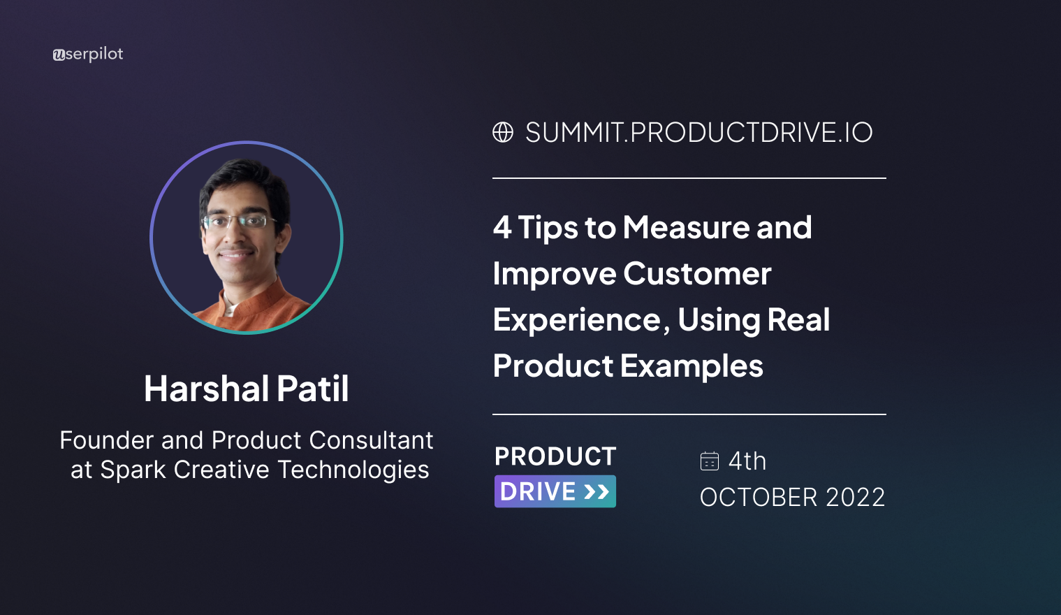 I am pleased to announce that I will present at Userpilot’s upcoming Product Drive Summit on October 4, 2022, at the invitation of Emilia Korczynska, Head of Marketing at Userpilot. Titled “4 Tips to Measure and Improve Customer Experience, Using Real Product Examples,” my presentation is tailored to the needs of present-day product management and product analytics practitioners.