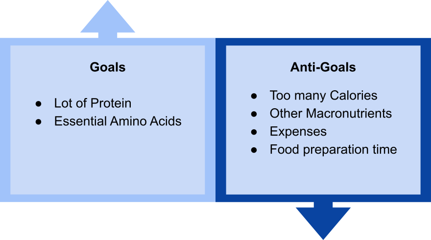 We will discuss goals first, then metrics for the goals, and then quantify the food sources on these metrics.