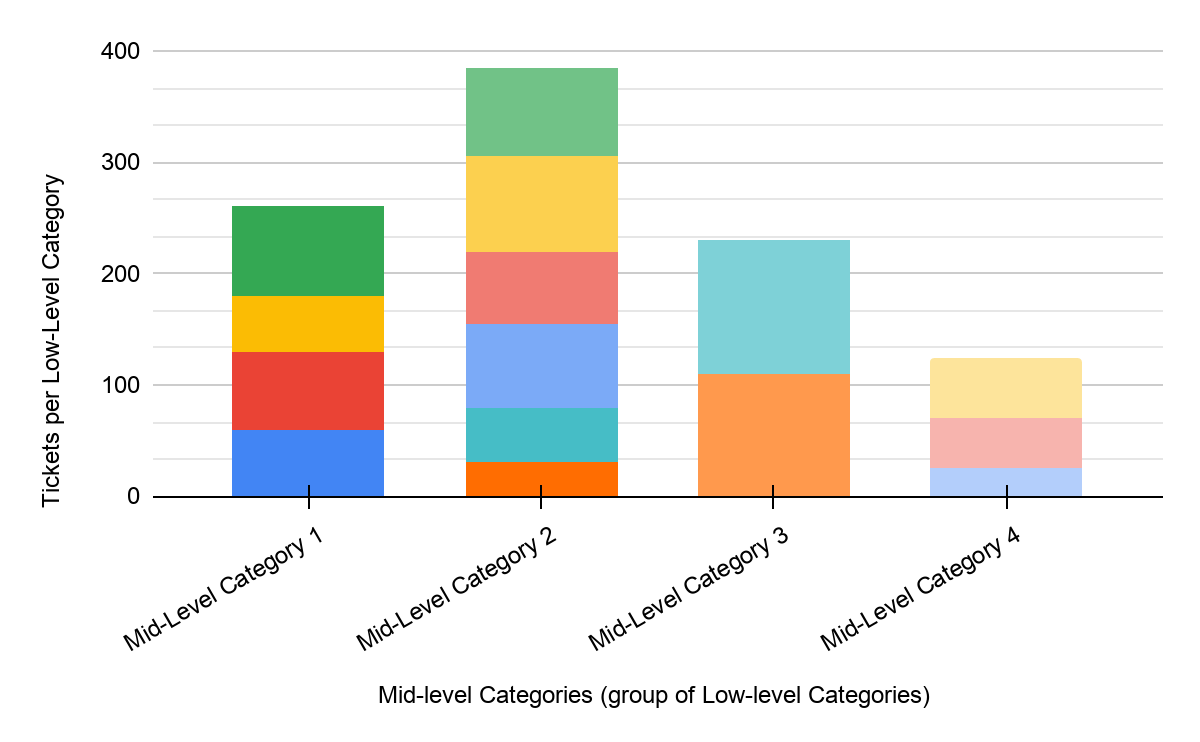 The mid-level categories are chosen by support agents and some customers, so they need to be intuitive as well but should also provide high-level insights to PMs.